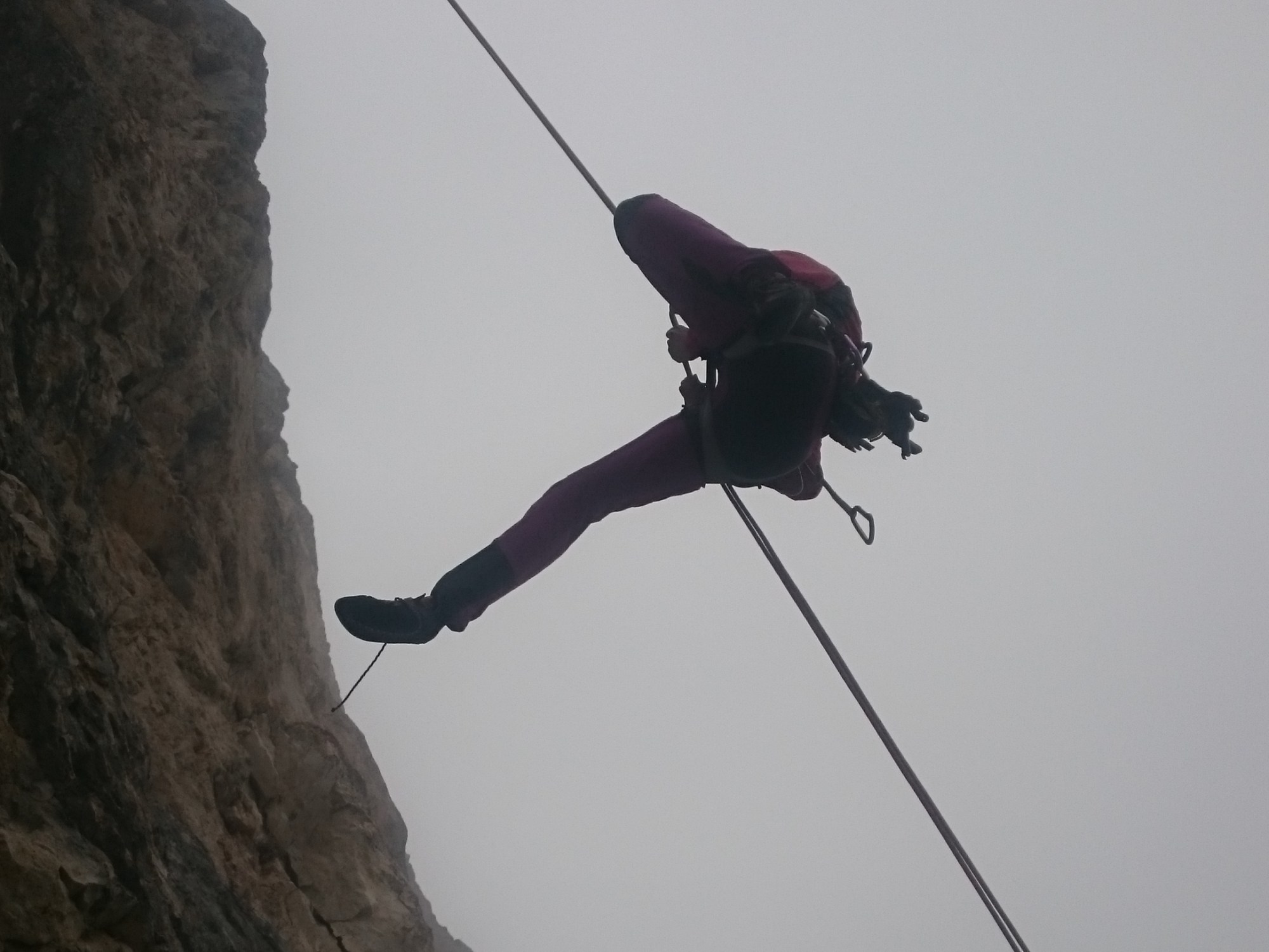 Und gleich nochmal in die Tannheimer: bei dem etwas zweifelhaften Wetter war eine eher kurze, gut gesicherte Tour gerade recht. Diesmal wurde es der “Siebenschläfer” an der Zwerchwand. Schöne Route, unten technischer Auftakt, oben gehts steil und kräftig durch einen Überhang. Der Regen hat brav gewartet bis wir beim Abseilen waren. Komischerweise hatten wir auf der eigentlich guten Abseilpiste einen Seilhänger… also schön 30m freihängend wieder raufgeprusikt… da schmeckt die Suppn im Gimpelhaus gleich doppelt gut 🙂